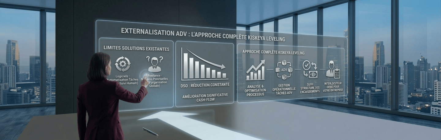 Kiskeya Leveling accompagne les entreprises B2B dans la gestion de leur administration des ventes, la relance des factures clients et l’optimisation de leurs processus Order-to-Cash.